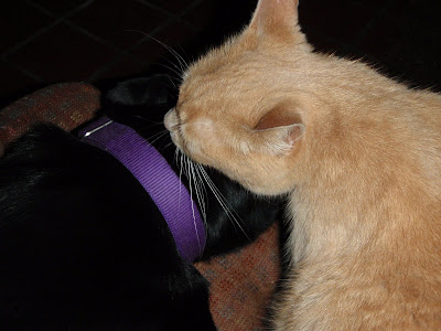 We started with housebreaking her, and crate training, and then moved on to sit, and puppy classes, and now! she's an outgoing, confident, sassy adolescent with more energy than even she knows what to do with. She's grown a bit - she's a bit heavier and a bit taller - we don't know if she'll fill out more or not. She brings you the toy she wants you to play with, and LOVES tug and fetch. She is easy to teach and has learned several commands, including sit, down, stay, wait, leave it, give, jump (on command, even), shake, low five, and find Jim/Steph! She lets us play with her head, her ears and her feet now, and she's even getting (a bit) better about having her nails trimmed. She comes and curls up next to us or in our laps at night, and even plays well with our kitty (most of the time). She's learning to walk nicely on a leash, not jump on people or beg at the table (still working on that one). She even knows to go to the bathroom. Outside. Before dawn. Rain or shine. Or snow. It's easy, you just throw your body against the door, wake Jim up, and have him take you.